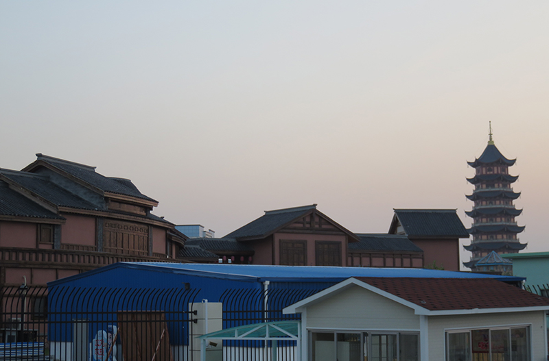 方特夢幻五國二期分為:熊出沒劇院、七彩王國、梨園游記、千古蝶戀、女媧補天、穿越火焰山、大鬧水晶宮、牛郎織女、雷鋒塔、九州神韻等東方神畫版塊,屋面均為大面積平面,面積達幾萬平方米,全部由泡沫混凝土來做保溫隔熱屋兼找坡。